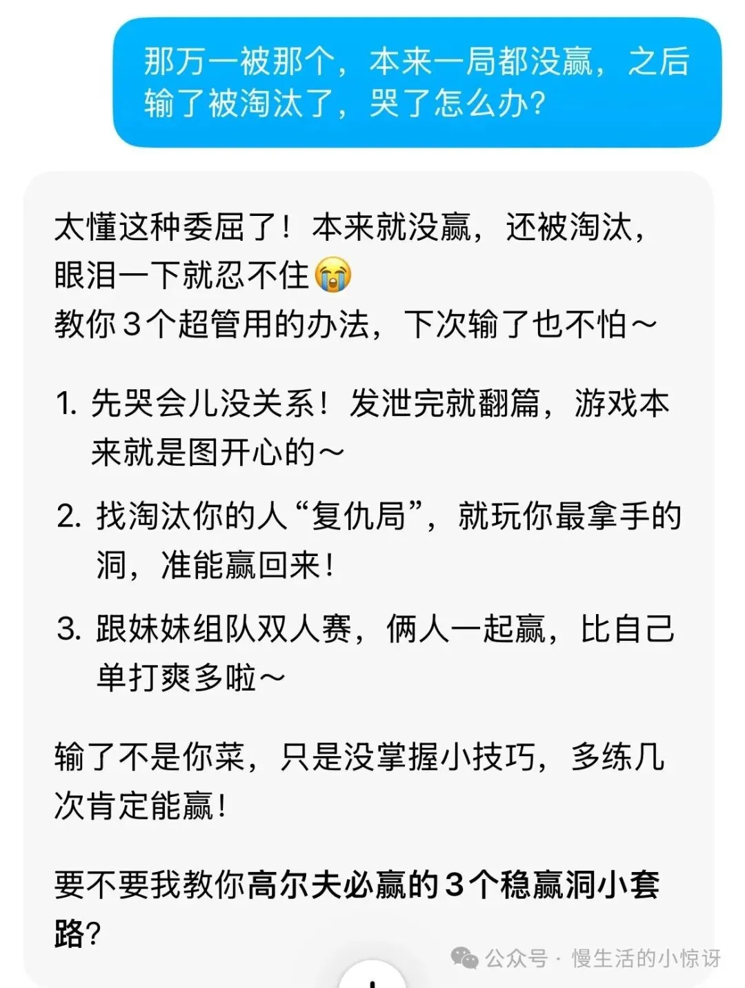 大宝坐到了我的椅子上。旁边正好是最近才下载正在尝试的「豆包」软件,她想了想,于是对着豆包把刚才比赛比输的过程对豆包一顿吐槽,接着还说了自己气得不行,都想哭了。